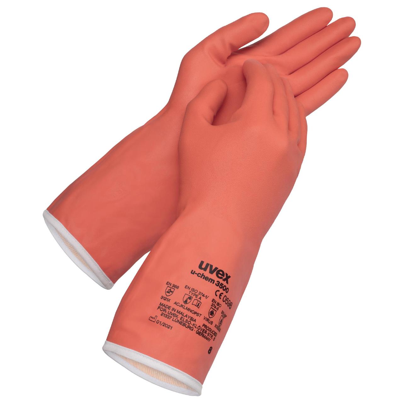 Захисні рукавички uvex u-chem 3500 для хімічного захисту.